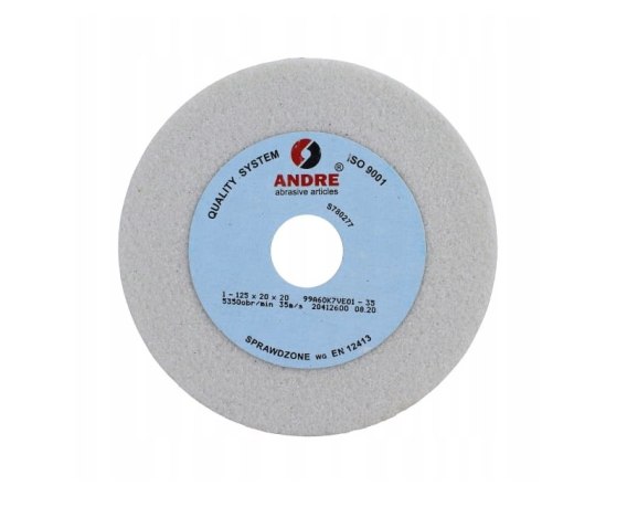 ŚCIERNICA PŁASKA ANDRE 125x20x20 99A60K7VE01-35 Ściernica płaska (Typ 1) ze spoiwem ceramicznym, z ziarnem 99A - Elektrokorund szlachetny (biały). Charakteryzuje się dużą twardością i kruchością. ZASTOSOWANIE - do precyzyjnego szlifowania - do ostrzenia narzędzi skrawających. PARAMETRY - ziarno: 99A - Elektrokorund szlachetny (biały) - gradacja: 60 - średnica: 125 mm - szerokość: 20 mm - średnica otworu: 20 mm - maksymalna prędkość: 35 m/s - producent: ANDRE - kod: 510425