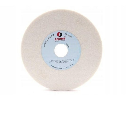 Ściernica płaska (Typ 1) ze spoiwem ceramicznym, z ziarnem 99A - Elektrokorund szlachetny (biały). Charakteryzuje się dużą twardością i kruchością. ZASTOSOWANIE - do precyzyjnego szlifowania - do ostrzenia narzędzi skrawających. PARAMETRY - ziarno: 99A - Elektrokorund szlachetny (biały) - gradacja: 60 - średnica: 200 mm - szerokość: 20 mm - średnica otworu: 32 mm - maksymalna prędkość: 35 m/s (3350 obr/min) - producent: ANDRE - kod: 511307