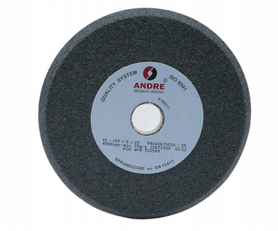 Ściernica profilowana do ostrzenia pił trakowych widiowych Nr katalogowy: 510549 Producent: Andre Typ sciernicy: 1C (profilowane) Średnica zewnętrzna: 150mm Grubość: 8mm Średnica otworu: 20mm Materiał ścierny: 98C (czarny-węglik krzemu) Numer ziarna: 60 (średnie) Stopień twardości: K (miękkie)