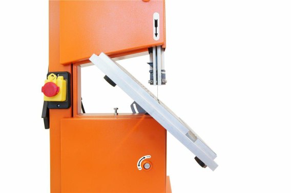 Aluminiowy stolik wyposażony jest w podziałkę mm i stabilną prowadnicę z lupą. Ponadto aluminiowy stolik piły można regulować po przekątnej w zakresie od 0 ° - 45 ° (czytelne na dokładnej skali kątowej). Gumowane rolki taśmy piły są wyważone i szlifowane, aby zapewnić płynną pracę. Taśma tnąca jest prowadzona przez precyzyjną prowadnicę 3-rolkową. w tym piła taśmowa, prowadnica z lupą, popychacz i rama podstawy DANE TECHNICZNE: Silnik prądu przemiennego: 230 V ~ 50 Hz Moc P1 (S2 - 15 min): 250 W. Długość taśmy piły: 1400 mm (+ - 5 mm) Szerokość taśmy piły: 6,5 mm (+ - 1 mm) Grubość taśmy piły: 0,35 mm (+ - 0,05 mm) Piła: do drewna (6 zębów na cal) Prędkość cięcia: 15 m / s (900 m / min-1) Regulacja nachylenia stołu piły: 0 ° - 45 ° Rozmiar stołu: 300 x 300 mm Szerokość przejścia maks .: 195 mm Przyłącze ssące: 40 mm Wymiary: 430 x 385 x 675 mm Waga około: 16 kg