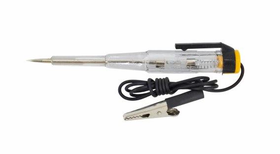 Grot wykonany z hartowanej stali węglowej. Transparentna obudowa z tworzywa ABS. Dioda LED sygnalizująca napięcie. Wyposażony w przewód połączeniowy z zaciskiem uziemiającym "krokodylkiem". Przeznaczony do napięć prądu stałego DC. Idealny do sprawdzania obwodów, bezpieczników, przełączników i przewodów w samochodach, przyczepach, łodziach, motocyklach i innych systemach niskiego napięcia. Dane techniczne: Długość całkowita: ok. 140 mm Zakres pomiarowy od 6 V do 24 V Długość kabla: 90 cm Waga: 40 g