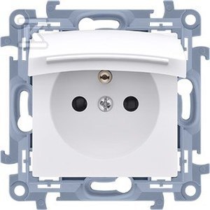 Gniazdo wtyczkowe IP44 z uszczelką z przesłonami torów prądowych, klapka w kolorze pokrywy (moduł) 16A, 250V~, szybkozłącza, biały, SIMON10 o numerze katalogowym CGZ1BCZ.01/11 w kategorii Gniazda podtynkowe, Gniazda instalacyjne. Produkt wyprodukowany przez markę KONTAKT-SIMON, seria SIMON 10.