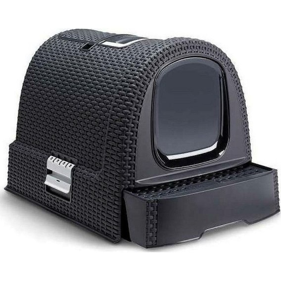 Znając potrzeby kotów i wysokie oczekiwania właścicieli, marka Curver stworzyła toaletę idealną, która nie tylko jest estetyczna, ale przede wszystkim bardzo praktyczna. Kuweta została wykonana z wysokiej jakości materiału przypominającego ratan, który jest również łatwy do utrzymania w czystości. Toaleta została wyposażona w wysuwaną szufladkę oraz schowek na łopatkę (łopatka i mata czyszcząca łapki w zestawie). Posiada szczelne zatrzaski, zapobiegające wysypywaniu się żwirku oraz w filtr pochłaniający przykre zapachy. Kuweta posiada również rączkę, dzięki której łatwo i wygodnie przeniesiemy kuwetę.