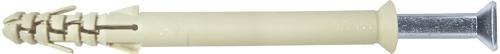 Dybel ramowo-elewacyjny do murów pełnych , koszulka nylonowa z krótką strefą rozporową , wkręt z łbem stożkowym , nacięcie krzyżowe pozidrive, ocynkowany na biało .