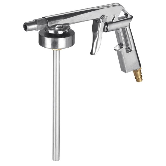 Przeznaczony do nakładania materiałów ochronnych na podwozie, substancji dźwiękochłonnych oraz uszczelniaczy. Pasuje do standardowych jednorazowych pojemników. Obrotowa dysza umożliwia dostosowanie ilości aplikowanego materiału w zależności od przepływu powietrza. Płynnie działający spust pozwala na dokładne dozowanie materiału natryskowego. Obudowa wykonana z aluminium zapewnia długą żywotność narzędzia. Ciśnienie robocze: 3-8 bar