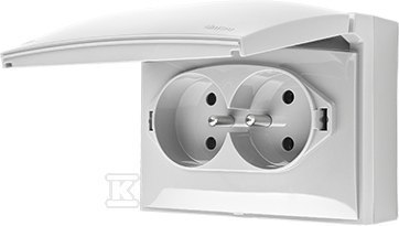 Gniazdo wtyczkowe natynkowe, podwójne kompaktowe z uziemieniem, klapka w kolorze pokrywy, IP44, 16 A, 250 V~, zaciski śrubowe, biały, AQUACLICK o numerze katalogowym  ACGZ2/11 w kategorii Gniazda natynkowe, Gniazda instalacyjne. Produkt wyprodukowany przez markę KONTAKT-SIMON, seria AQUACLICK.
