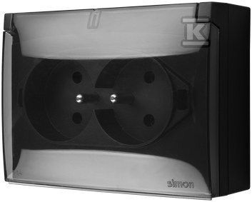Gniazdo wtyczkowe natynkowe, podwójne kompaktowe z uziemieniem, klapka transparentna, IP44, 16 A, 250 V~, zaciski śrubowe, czarny, AQUACLICK o numerze katalogowym ACGZ2/49A w kategorii Gniazda natynkowe, Gniazda instalacyjne. Produkt wyprodukowany przez markę KONTAKT-SIMON, seria AQUACLICK.