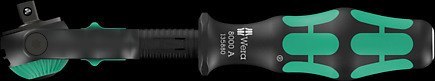 Grzechotka Zyklop 1/4". Wysokiej jakości wytrzymała powierzchnia, matowa, chromowana w kolorze czarnym. Drobna podziałka z 72 zębami zapewniająca niewielki kąt pracy wynoszący zaledwie 5°. Główkę grzechotki można swobodnie obracać i blokować w dowolnej pozycji za pomocą przełącznika suwakowego znajdującego się z obu stron narzędzia. Bezproblemowa praca nawet w bardzo wąskich lub trudno dostępnych miejscach. Możliwość ustawienia w pozycjach 0°, 15° i 90° w lewo i w prawo gwarantuje bezpieczną pracę bez ryzyka ześlizgnięcia się główki grzechotki. W pozycji 0° grzechotka z adapterem i bitem może być używana jak konwencjonalny wkrętak. Konstrukcja wykorzystująca masę własną narzędzia przyspiesza proces wkręcania. Symetryczna konstrukcja rękojeści Kraftform i tulei obrotowej wspomaga szybkie pokręcanie. Kształt rękojeści Kraftform, który jest idealnie dopasowany do dłoni, zapobiega powstawaniu pęcherzy i odcisków. Twarde materiały użyte do wykonania rękojeści umożliwiają szybkie uchwycenie narzędzia bez "przykleja