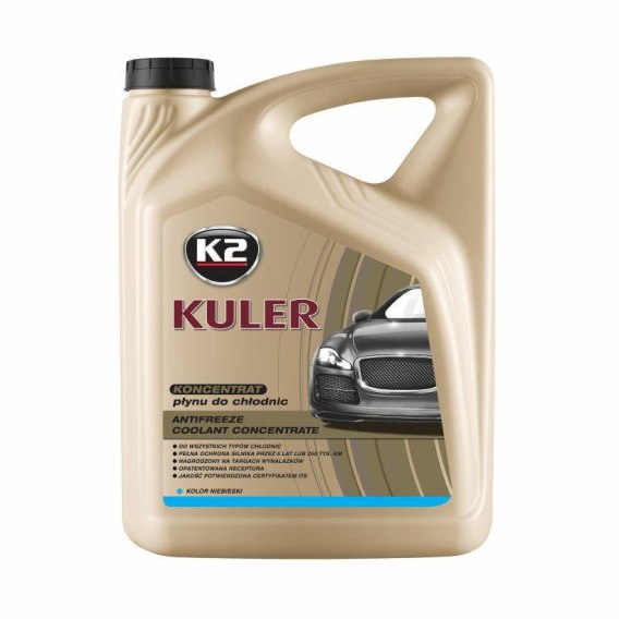 K2 KULER koncentrat to nowoczesny, a zarazem uniwersalny, koncentrat płynu do chłodnic, cechujący się bardzo wysokimi parametrami użytkowymi. ZAPEWNIA OPTYMALNĄ TEMPERATURĘ PRACY Specjalnie opracowana receptura latem chroni silnik przed przegrzaniem, a zimą przed zamarzaniem. PEŁNA OCHRONA SILNIKA PRZEZ 7 LAT lub 250 tys. km Doskonały pakiet inhibitorów złożony z kwasów karboksylowych z dodatkiem specjalnych inhibitorów korozji i środków antypiennych zabezpiecza silnik. Zapewnia pełna ochronę silnika przez 7 lat lub 250 tys. kilometrów, także gdy mieszamy go z innymi markowymi płynami o przedłużonej żywotności, niezależnie od koloru.