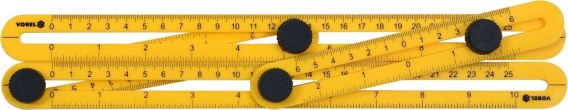 Cztery ramiona o zewnętrznych wymiarach - 310 x 175 x 25 mm połączone wkrętami blokującymi umożliwiają swobodne dopasowanie do mierzonych kątów, łatwe zablokowanie uzyskanego kształtu i przeniesienie wymiarów na przycinany materiał