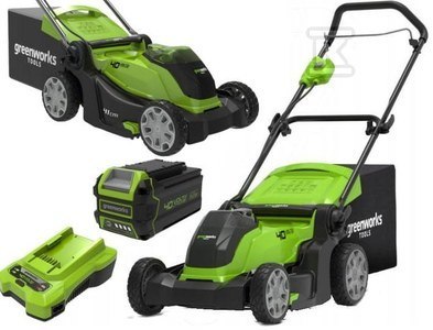 Kosiarka 40V 41cm [Zestaw(Ład.+4Ah), G40LM41K4] o numerze katalogowym  GR2504707UB w kategorii Kosiarki, podkaszarki i akcesoria, Narzędzia ogrodowe. Produkt wyprodukowany przez markę GREENWORKS.