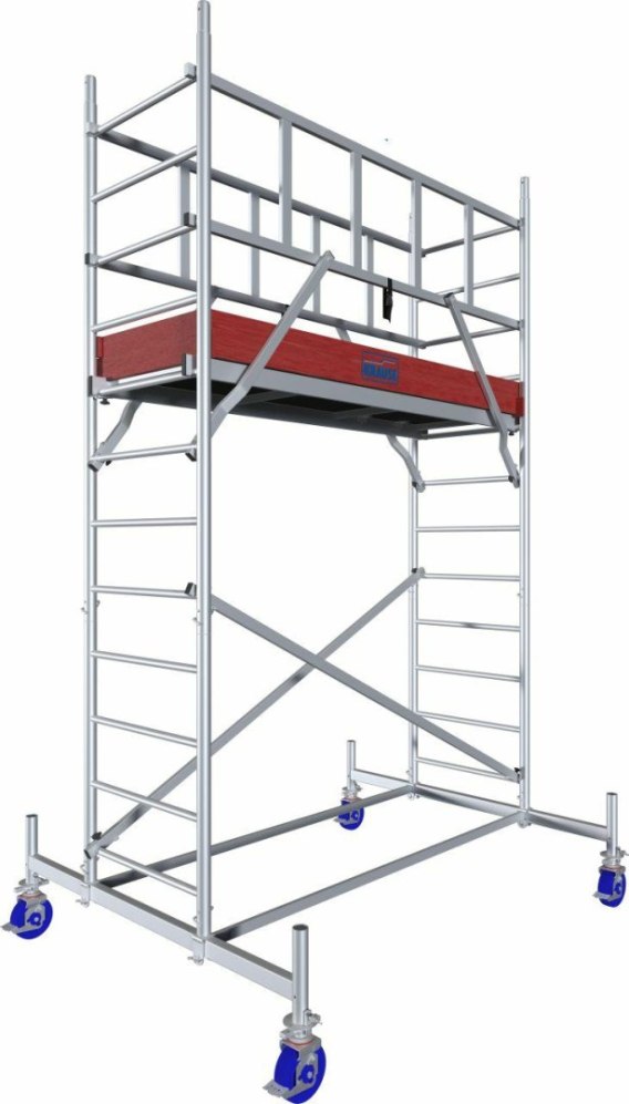 Masywne aluminiowe rusztowanie jezdne do wymagających zastosowań wyposażone w rolki z hamulcem oraz możliwością regulacji wysokości. Optymalna stabilność zapewniona przez wytrzymałe stalowe stabilizatory wymagane od 4,30 m wysokości roboczej Każdy pomost wyposażony jest w burty ochronne Maksymalna odległość pomiędzy kolejnymi pomostami wynosi 2 m zapewniając przy tym szybki i beznarzędziowy montaż. Atestowane przez TÜV, nośność 200 kg/m2 według PN EN 1004-1