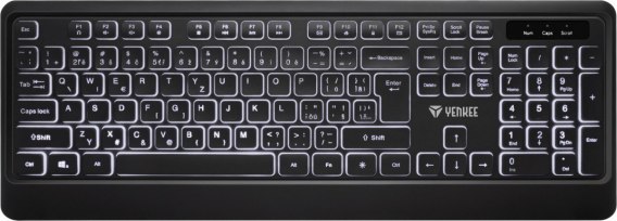 - Podświetlana klawiatura USB z niskoprofilowymi klawiszami i cichą membraną dla wygodnego i cichego pisania.