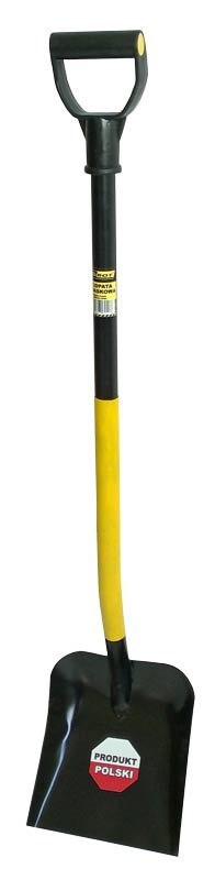 Łopata piaskowa wykonana ze stali sprężynowej o trzonku metalowym z nakładką antypoślizgową zakończonym uchwytem z tworzywa .