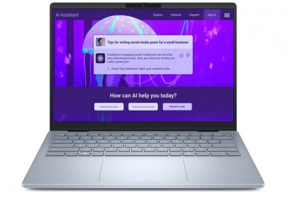 Dell 14 Plus przenośny, lekki laptop zasilany przez AI i grafikę Intel Arc, idealny dla twórców i małych firm.