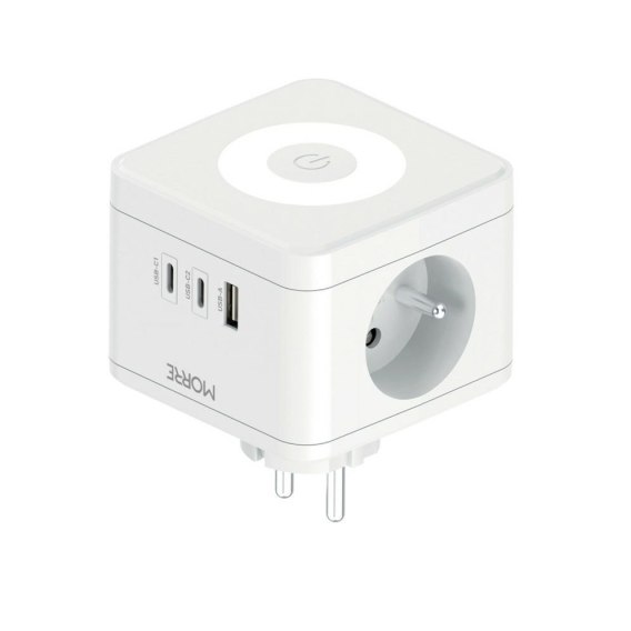 MORRE M401 Rozgałęziacz zasilania Kompaktowe centrum zasilania z lampką nocną Zasilaj 5 urządzeń jednocześnie Dwa gniazda AC (3680 W @ 230 V~/16 A) oraz trzy porty USB ( USB-A i 2× USB-C po 12 W) pozwalają podłączyć laptop, router, lampkę nocną, smartfon, tablet, słuchawki, drukarkę i głośnik Bluetooth. Ekspresowe ładowanie USB Dzięki mocy 12 W na każdym porcie smartfon osiąga 50 % poziomu naładowania w około 60 minut, co jest idealne, jeśli przed wyjściem na spotkanie masz tylko chwilę na doładowanie baterii. Trzystopniowa lampka nocna Wbudowana dioda LED generuje od 5 do 25 lm światła, od przytulnego blasku do czytania po delikatne światło ułatwiające zasypianie. Bezpieczeństwo na najwyższym poziomie Ognioodporna obudowa PC (750 °C), inteligentny chip LN4050 z ochroną przed przeciążeniem (16 A), zwarciem i przegrzaniem, centralny włącznik z niebieską diodą LED oraz ochronne przesłony gniazd gwarantują spokój ducha.