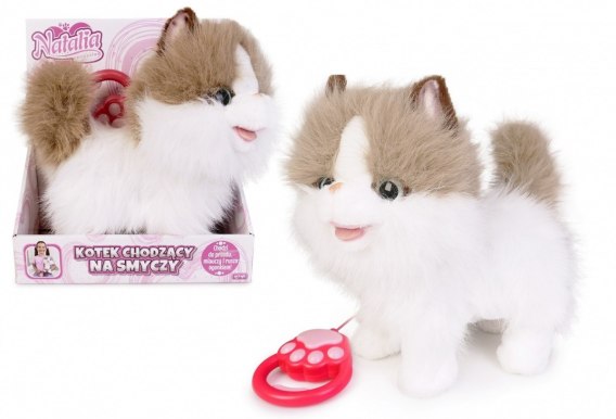 • Maskotka interaktywna Kot chodzący na smyczy biało-rudy