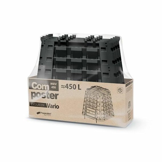 Kompostownik Evogreen 450 litrów firmy PROSPERPLAST Termokompostownik wykonany jest z wysokiej jakości, elastycznego tworzywa sztucznego odpornego na warunki atmosferyczne. Umieszczone w śc ianach bocznych otwory wentylacyjne pozwalają na optymalny rozkład odpadów biologicznych. Kompostownik posiada klapę górna z zamkiem oraz zasuwkę dolną do wyciągania kompostu. Bardzo prosty w montażu. Kompostownik MROZOODPORNY. Wymiary kompostownika (podstawy) po złożeniu: głębokość: 95 cm szerokość: 91,5 cm wysokość: 83 cm pojemność: 0,450 m3 (450 litrów) KOLOR CZARNY Montaż: Kompostownik jest do samodzielnego montażu.