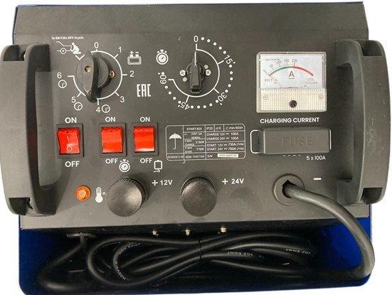 Prostownik transformatorowy START-825 to urządzenie do ładowania akumulatorów kwasowo - ołowiowych. Zasilane napięciem 230V zapewnia wysoki prąd ładowania i rozruchu. Charakteryzuje się prostą obsługą i niezawodnością. Obudowa urządzenia wykonana jest zgodnie z normą PN-EN 60529:2003 spełnia klasę ochrony IP20. Koła jezdne ułatwiają przemieszczanie urządzenia. START-825 posiada wbudowany amperomierz, minutnik szybkiego ładowania oraz sześciopozycyjny przełącznik prądu ładowania. Urządzenie wyposażone w dodatkową funkcję rozruchu pojazdów. Starannie nawinięty transformator zapewnia stabilne i bezpieczne ładowanie akumulatorów.