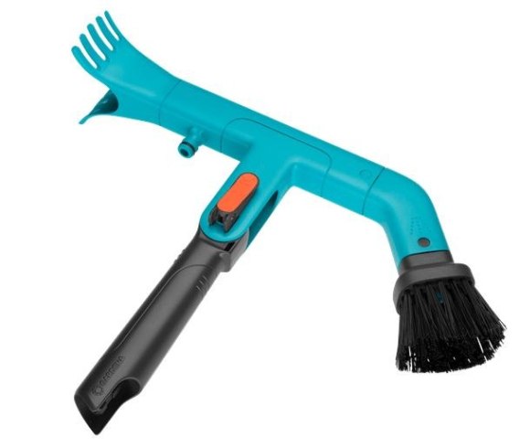Dzięki zintegrowanemu uchwytowi można bez problemu korzystać z przyrządu do czyszczenia rynien dachowych bez trzonka combisystem. Sprężyste włosie z jednej strony i dwie solidne skrobaczki z najwyższej jakości tworzywa sztucznego z drugiej gwarantują skuteczną pracę. Do czyszczenia rynien można także użyć wody dzięki zintegrowanemu przyłączu Original GARDENA System, które umożliwia podłączenie węża ogrodowego.