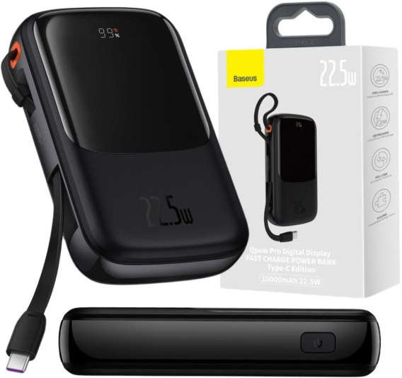 Powerbank Baseus Qpow Digital Display PPQD060101 10000mAh 22,5W PD QC 3.0 1x USB-A 2x USB-C + KABEL