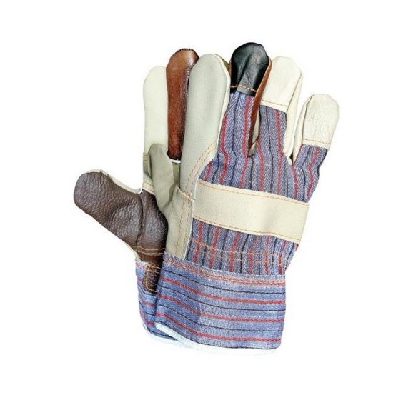 Skóra bydlęca licowa z przeszytym na dłoni dodatkowym wzmocnieniem Drelich i mankiet w różnokolorowe paski Od wewnątrz wypodszewkowane, co podnosi komfort użytkowania Popularnie stosowane do ogólnych prac mechanicznych Wykorzystywane w budownictwie oraz przemyśle ciężkim Potocznie zwane kolorowanką Rozmiar 10.