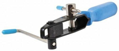 Szczypce z zastosowaniem do zaciskania i cięcia taśmowych opasek bez końcowych na przegubach napędowych oraz przewodach elastycznych. Wbudowane ostrze tnie opaskę przez przesunięcie dźwigni w przód co umożliwia sprawne działanie bez dodatkowych narzędzi.