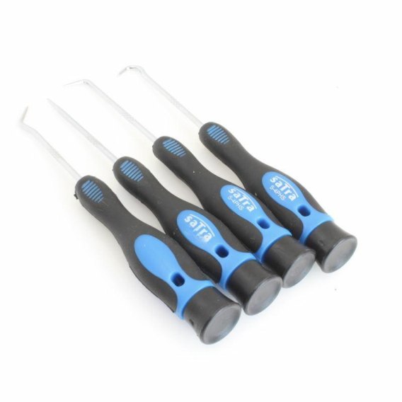4-częściowy zestaw haczyków przeznaczonych do usuwania uszczelek, tulei, zawleczek i O-ringów. • Ergonomiczne uchwyty, które są odporne na zużycie i precyzję. • Haczyki wykonawcze i chromowane groty z radełkowaniem. • Materiał: stal węglowa, PP/TPR • Długość: 170 mm Zestaw zawiera: • haczyk z grotem prostym • haczyk z grotem wygiętym pod kątem 90° • haczyk z grotem wygiętym pod kątem 45°