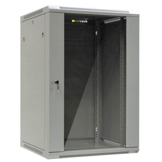 Szafa wisząca 19" Netrack, 18U/600x600mm - szary, drzwi szklane, otwierane boki