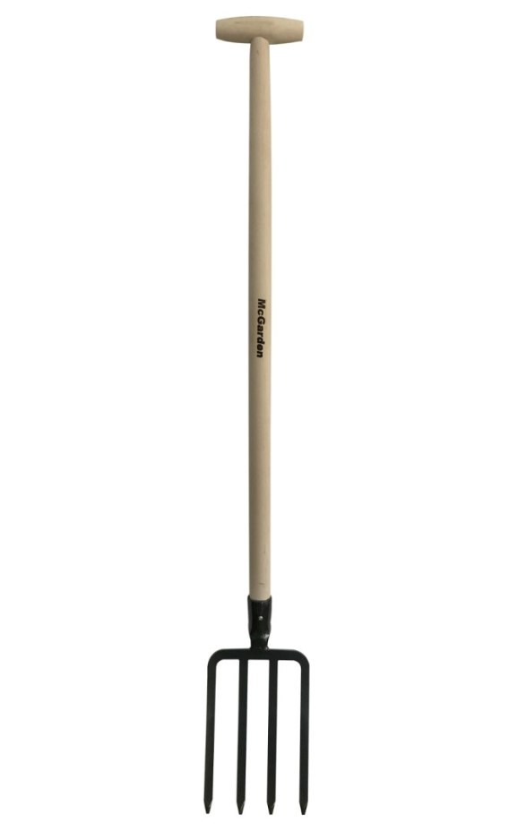 Widły (gable) amerykany do kopania, spulchniania gleby, szerokie zęby, stal borowa hartowana do 46 HRC, trzon drewniany - bukowy typ T-100