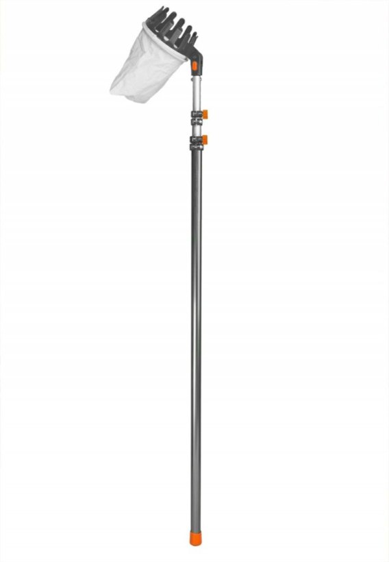 KT-V1531-375 Zbierak do owoców V-SERIES na teleskopowym trzonku 3,75m - narzędzie umożliwiające łatwe zrywanie owoców z drzew bez użycia drabiny - kształt gwarantuje, że owoc wpadnie bezpośrednio do woreczka - woreczek z wytrzymałej bawełny - posiada nożyk do zacięcia aby łatwiej było ściągnąć owoc z drzewa długość: 150 cm - 375cm EAN: 5907544440710